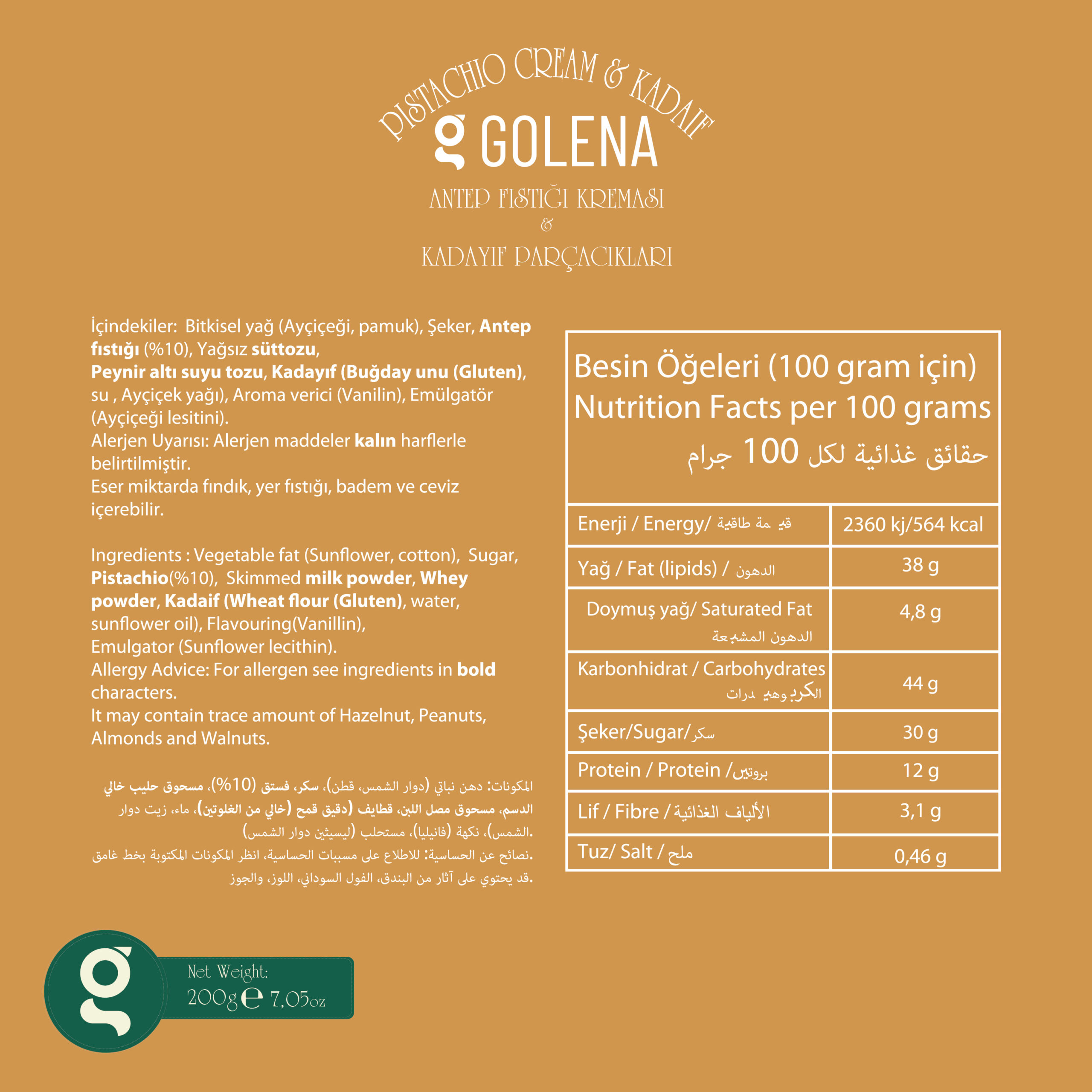 • %10 oranında gerçek Antep fıstığı kullanılarak üretilmiştir, yüksek lif kaynağıdır.